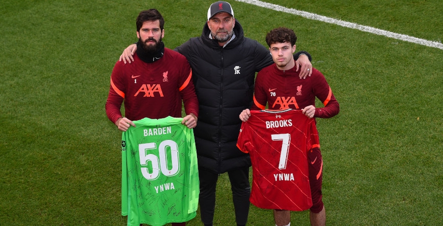Cały zespół zebrał się na płycie boiska z koszulkami Liverpoolu z nazwiskami tego duetu, starając się przekazać wsparcie w walce z chorobą.