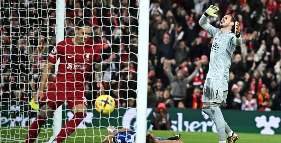 Ekipa Leicester sprawiała the Reds mnóstwo problemów w defensywie, ale to gospodarze zdołali jeszcze przed przerwą wyjść na prowadzenie. Darwin Núñez przyzwyczaił nas w ostatnim czasie do marnowania okazji, więc z pomocą przyszedł Wout Faes, który kuriozalnie wbił piłkę do własnej bramki po wcześniejszym strzale w słupek przez Urugwajczyka.