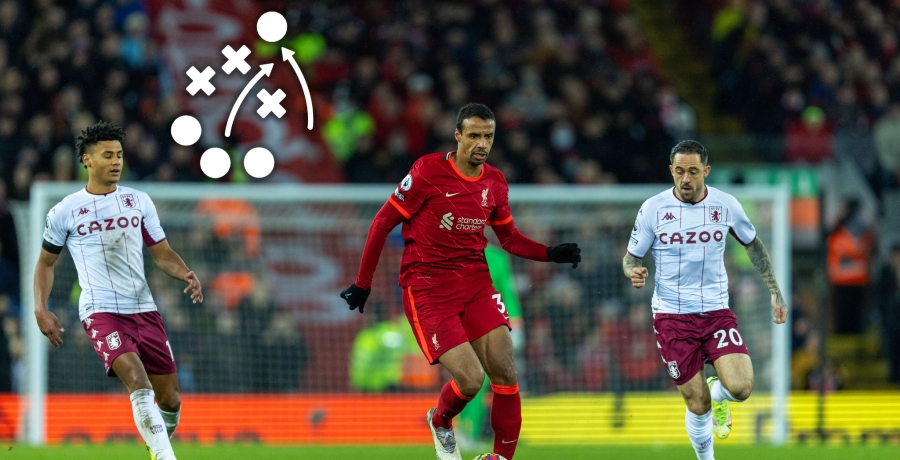 W tym celu dobrze sprawdzało się ustawienie pomocników pomiędzy trzema graczami gości. Jeśli nie udawało się za pierwszym razem wykonać podania między formacje Villi, sytuacyjna trójka zawodników LFC w ostatniej linii zapewniała szybką cyrkulację piłki na drugą stronę boiska. Bliskie ustawienie względem kolegów z drużyny sprawiało, że gospodarze nie musieli stosować długich zagrań, które – nomen omen – długo lecą i przeciwnicy mogą w tym czasie zyskać bezcenną chwilę na przegrupowanie się.
