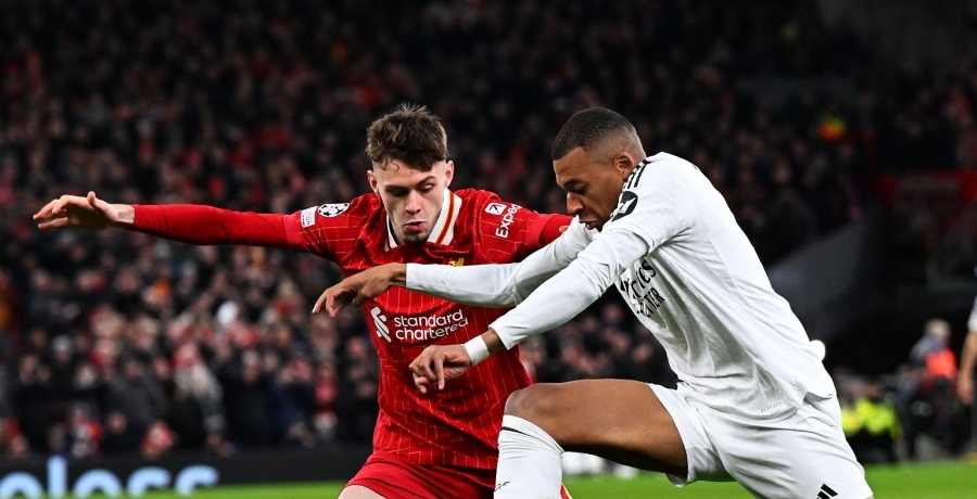 To był moment, który zapalił lont na Anfield. Kylian Mbappe uciekł Alexisowi Mac Allisterowi lewą stroną boiska, gdy Real Madryt przeprowadził szybki kontratak tuż po pół godzinie gry.