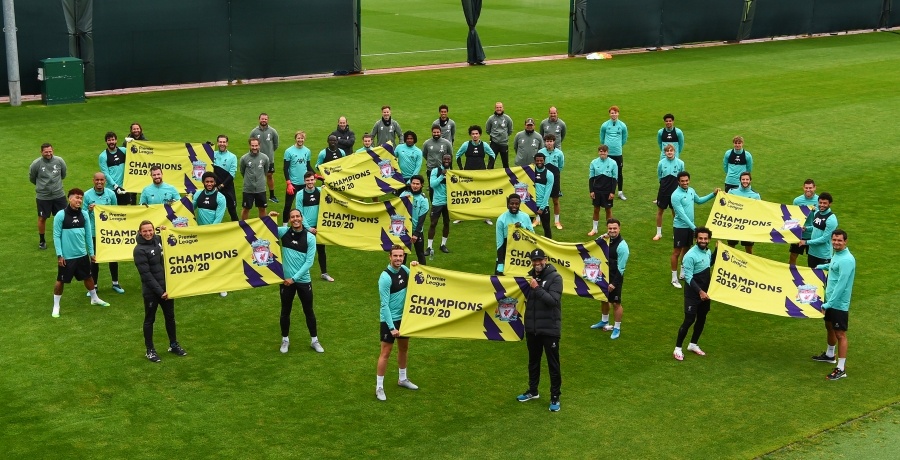 Dziś podczas treningu piłkarze pozowali do zdjęć z banerami, pokazującymi kto zdobył tytuł mistrza Anglii w sezonie 2019/2020.