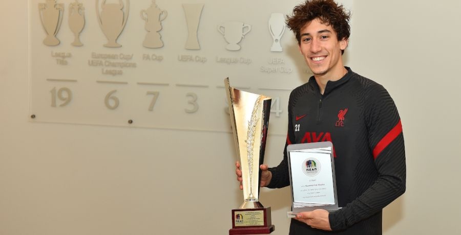 Kostas Tsimikas został wybrany najlepszym piłkarzem sezonu 2019/2020 w Grecji i odebrał dziś w AXA Training Centre pamiątkową statuetkę niedługo przed wylotem zespołu do Węgier.