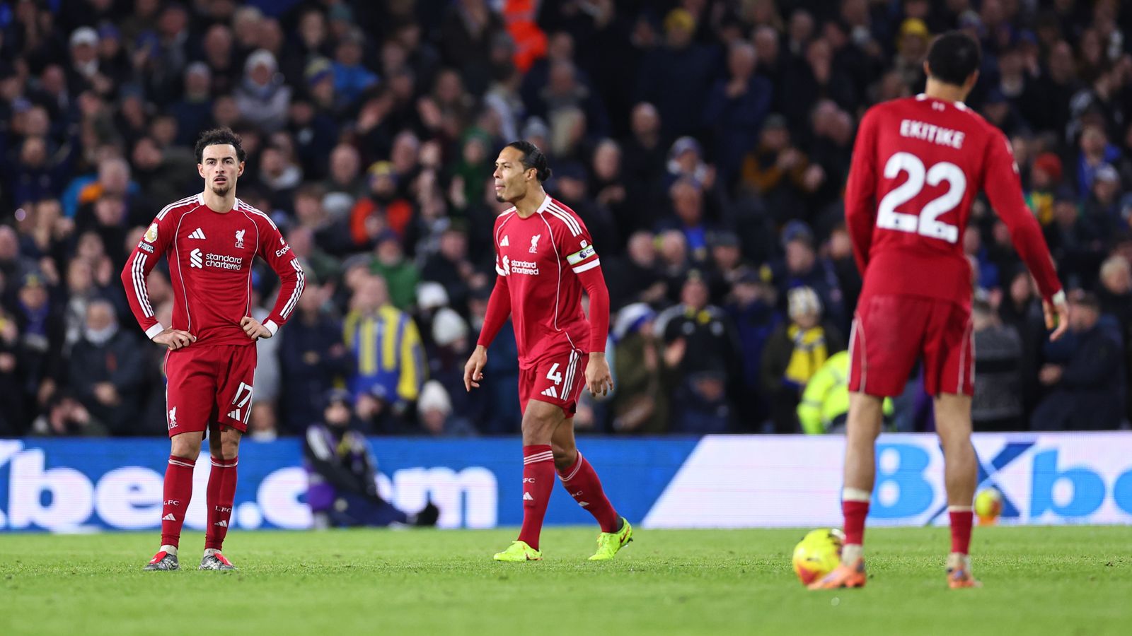 Po błyskawicznym dublecie Hugo Ekitike na początku drugiej połowy, Liverpool pozwolił Leeds wrócić do gry. Ibrahima Konaté sprokurował rzut karny, który wykorzystał Dominic Calvert-Lewin, a chwilę później Anton Stach uderzył na 2:2. Dominik Szoboszlai znów wyprowadził Liverpool na prowadzenie, ale Ao Tanaka wyrównał w doliczonym czasie gry po rzucie rożnym.
